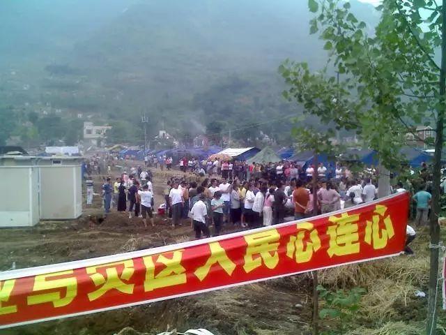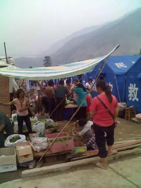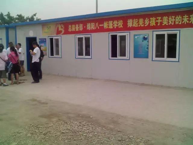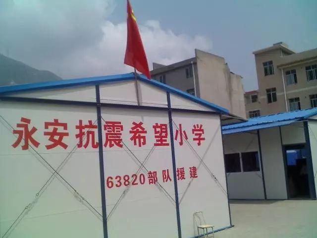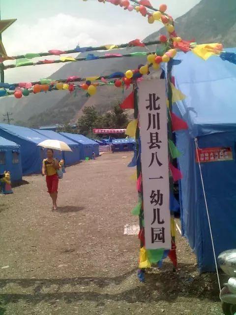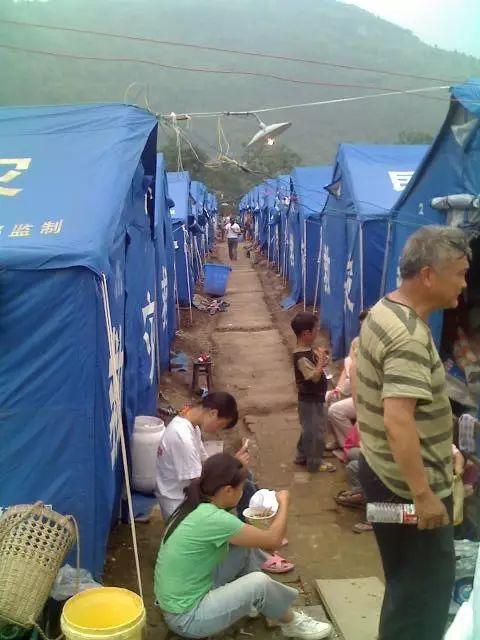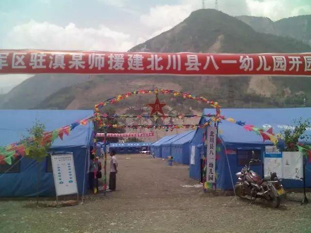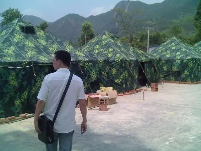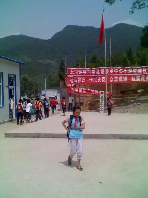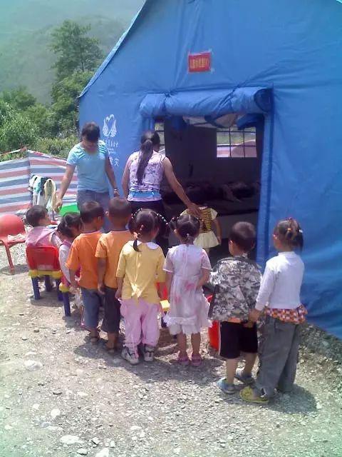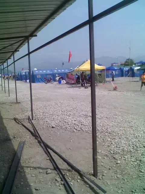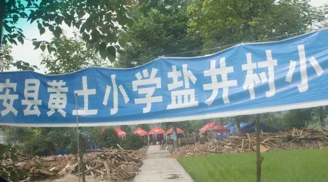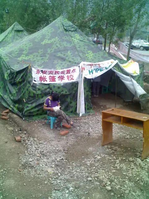 清理校舍废墟,原地搭建的安县黄土镇帐篷小学