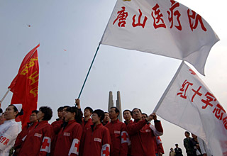 15日,唐山市14名抗震救灾专家心理咨询志愿服务队也起程赶赴灾区。唐山市地震局组织成立了唐山支援灾区专家组,由骨科专家、规划建筑专家、救护专家、防疫专家、经验丰富的唐山抗震救灾指挥人员组成的专家组,也前往灾区。