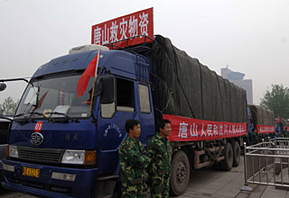 在民间积极支援四川灾区的同时,唐山市也迅速行动起来。5月13日,唐山市委、市政府向四川省抗震救灾指挥部捐款1000万元。随后,装满20辆卡车、价值600万元的救灾物资也赶赴灾区;丰南区通过政府、企业、民众的共同行动,组织了1000万元捐款和价值100多万元的救灾物资送往灾区。仅13日、14日两天,唐山市向四川地震灾区捐款捐物已达3000多万元。