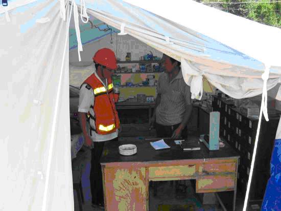 在这里,白天帐篷里温度达到40度,大家都戏称为“免费桑拿”;出去工作时阳光直射,紫外线较强,队员们太阳晒到的部分都退了皮,还要的队员胳膊和脖子上长出了光敏性皮炎;晚上睡在帐篷里蚊虫又开始向我们进攻,队员们身上起了从来没有的大疙瘩;最怕的是受暴雨侵袭,外面下大雨,里面下小雨,我们的被子被打湿,我们只好抱着湿被头睡觉……