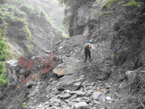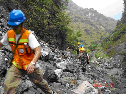 尽管条件艰苦,我们也要冒险工作。每天早上我们带上干粮,走进大山深处,走遍每一村,进入每一家。走在大山的路上,余震随时都有可能发生,山体随时可能发生滑坡,半山腰悬着的危石随时都有可能落下,但人民的利益高于一切,想着大山里村民的卫生状况,我们每一天都冒着生命危险开展工作。