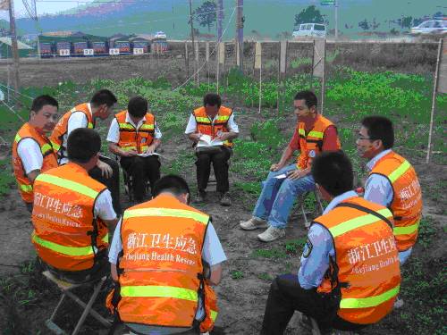 “大灾之后必有大疫”,汶川地震后,我们看到灾区人民的卫生安全受到严重威胁,作为人民的健康卫士,在人民最需要我们的时候,灾区就是战场,危难时刻,我们义不容辞,在灾害的紧要关头,我们在第一时间报了名,在嘉兴市卫生监督所吴小龙的带领下,于2008年6月7日从嘉兴出发,来到了抗震救灾的第一线--四川省青川县三锅乡开展卫生救援工作,主要负责青川县四个乡(三锅乡、蒿溪乡、前进乡、乐安寺乡)的饮用水卫生、食品安全、疾病监测、健康教育等卫生防疫工作。