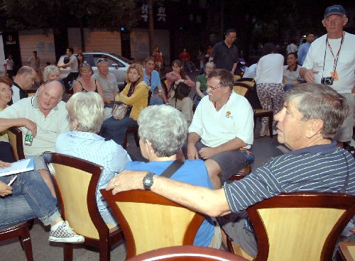 5月12日,汶川发生地震后,在成都的外国旅游者被安全转移到户外。 5月12日,四川汶川地震波及成都,成都市民积极避险自救。目前,成都市区秩序正常。 新华社发(余坪 摄)