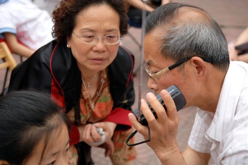 5月12日,汶川发生地震后,成都市民通过收音机了解地震情况。 5月12日,四川汶川地震波及成都,成都市民积极避险自救。目前,成都市区秩序正常。 新华社发(余坪 摄)