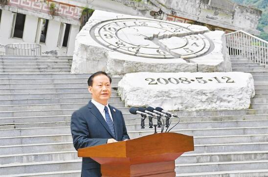 5月12日下午,我省在汶川县映秀镇举行“5·12”汶川特大地震抗震救灾十周年纪念仪式,深切悼念在地震中不幸罹难的同胞和在抗震救灾中捐躯的英雄,传达学习习近平总书记、李克强总理关于防灾减灾重要指示批示,要求全省上下继续弘扬伟大抗震救灾精神,把对党、对祖国、对全国人民的感恩之情转化为做好各项工作的实际行动,奋力推动治蜀兴川再上新台阶。
