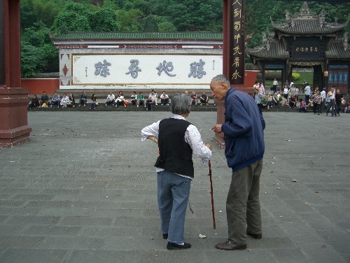 5月12日,群众在都江堰景区门口聚集。 当日14时28分,四川汶川县发生7.8级地震,离汶川约100公里的都江堰市部分设施受损,多处房屋发生倒塌,目前伤亡情况正在统计之中。 新华社记者郑悦摄