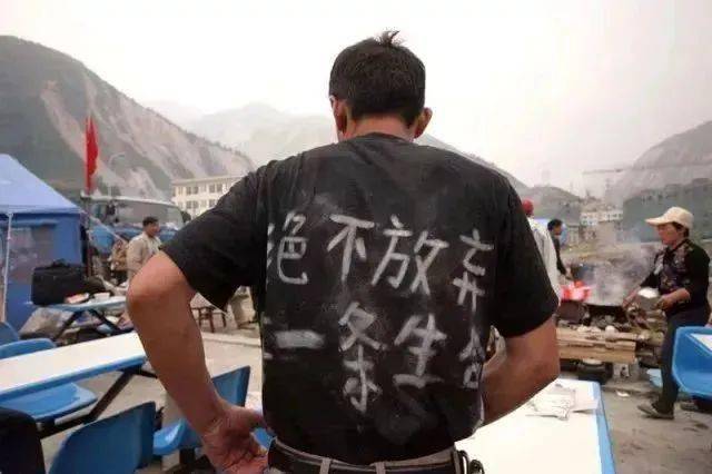 🔼 一营救人员衣服背面上写着:绝不放弃一条生命。