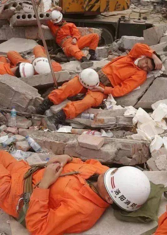 🔼 连续作战的洛阳消防抢险救援突击队队员们。
