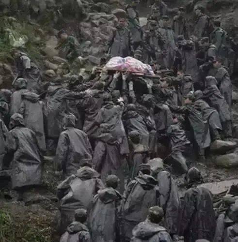 🔼 在地震中痛失妻子的男子,用绳子将妻子的尸体绑在背部,送她去太平间。在极大悲痛的折磨中,他努力要给予自己的妻子死后些许的尊严。