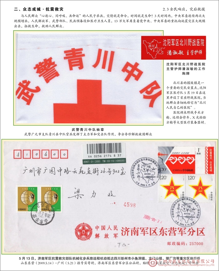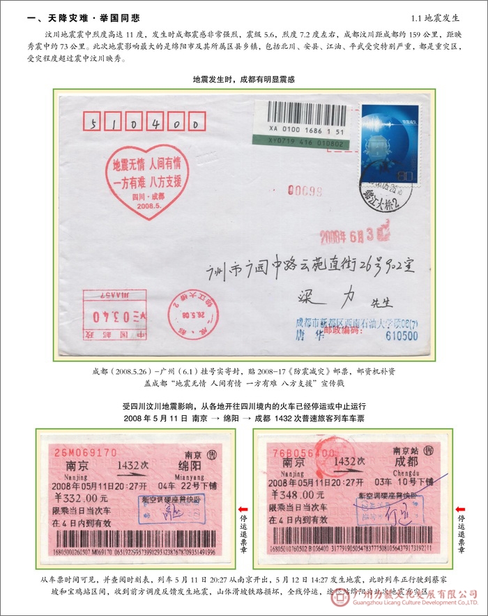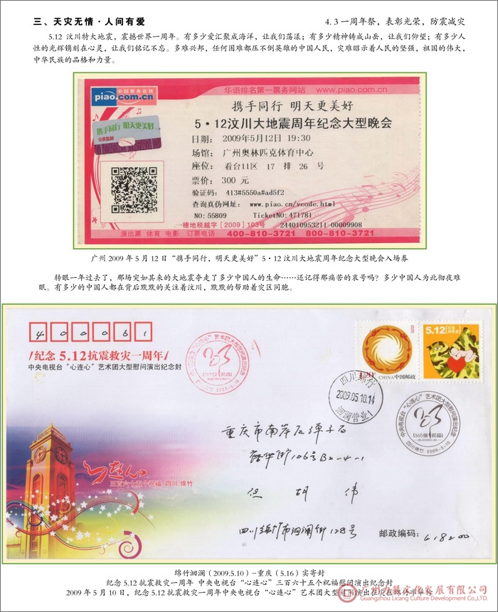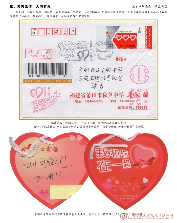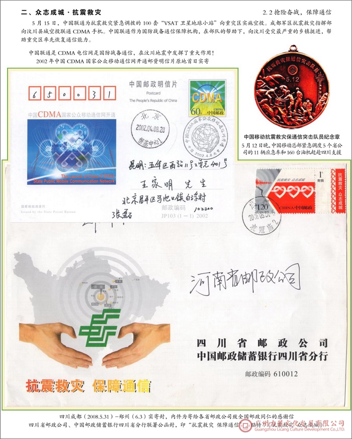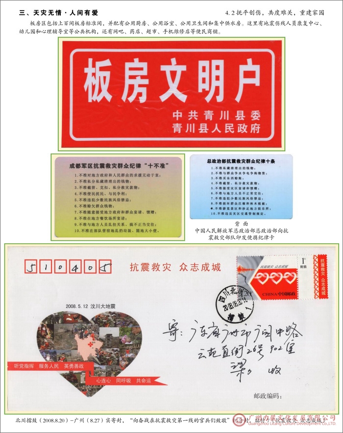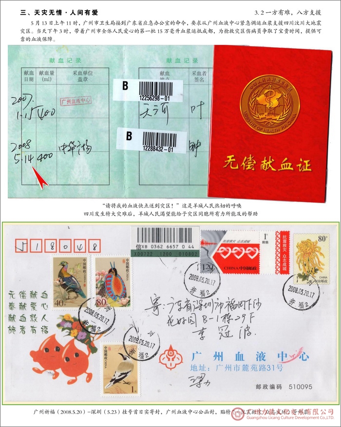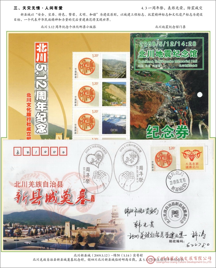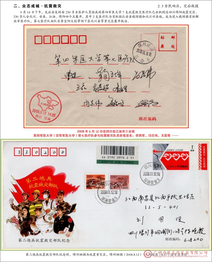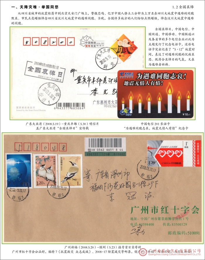本邮集作者作为医务人员参与5·12抗震救灾,通过展示从地震灾区和全国各地寄出的实寄封片,以及反映抗震救灾的真实历史物品;介绍强震对生活、生产和邮政通信运输的影响,展现中华民族的中国心、抗震情。