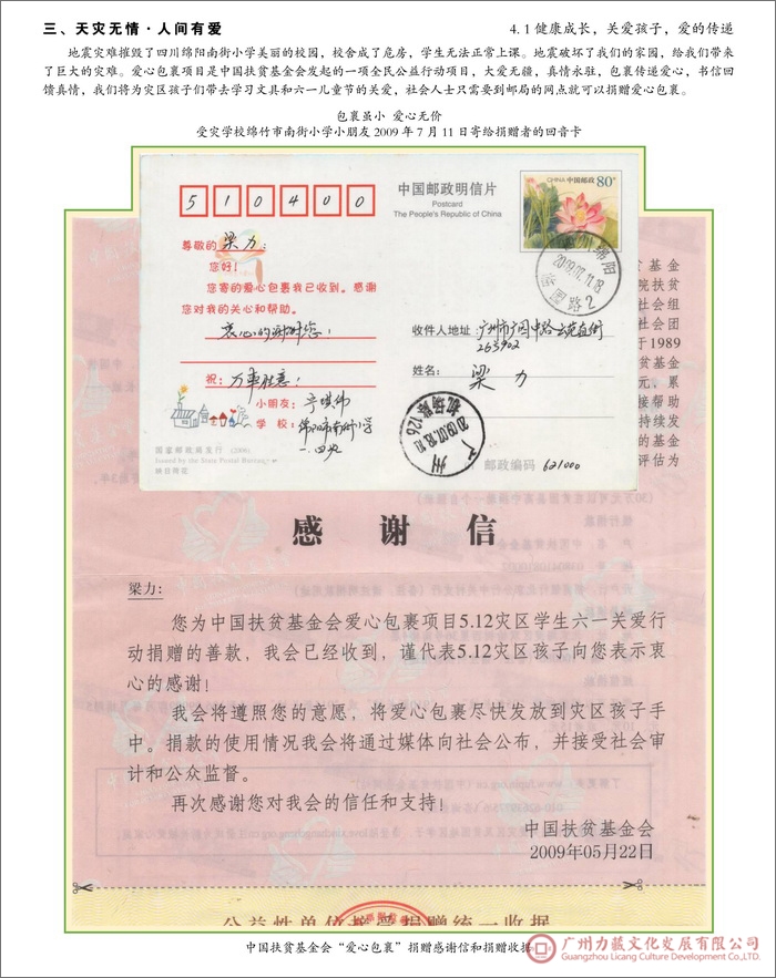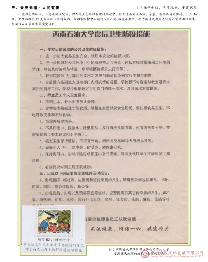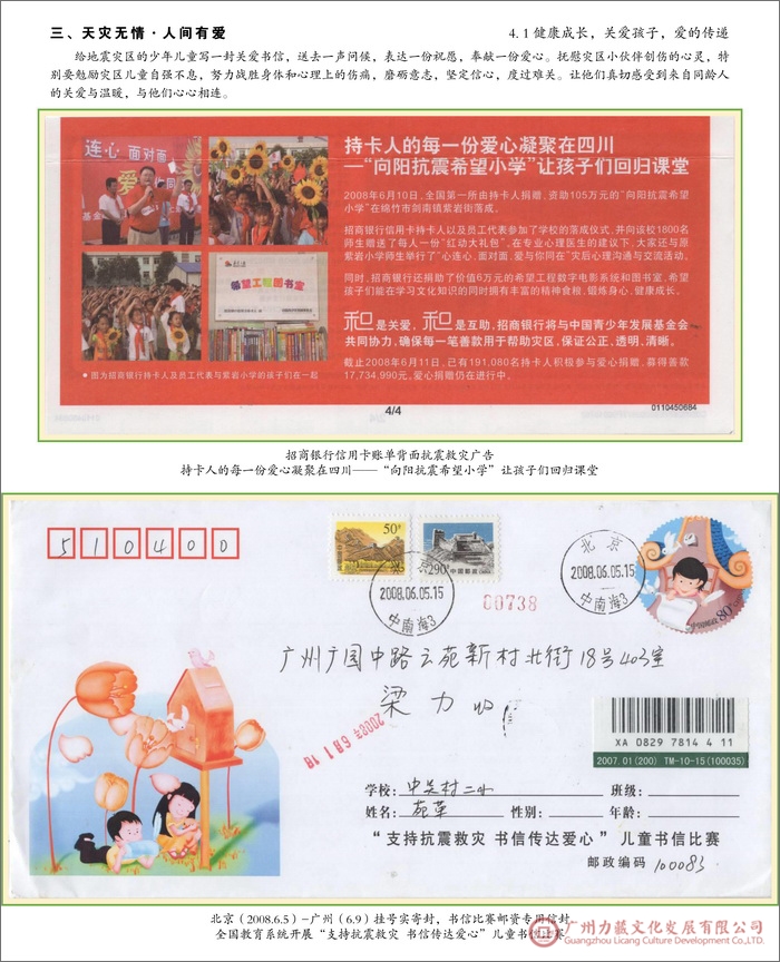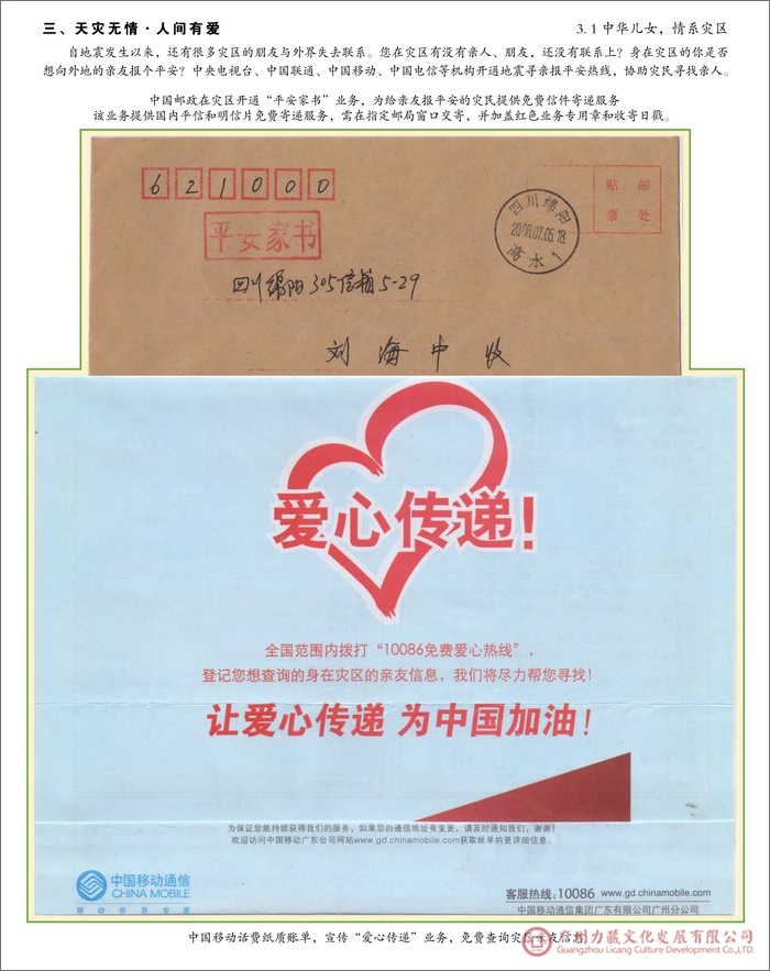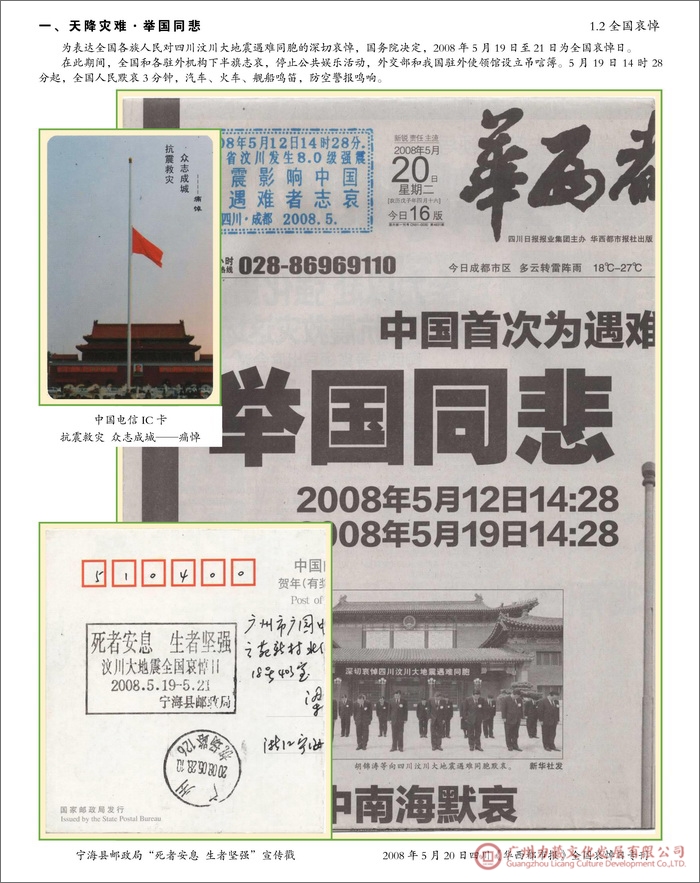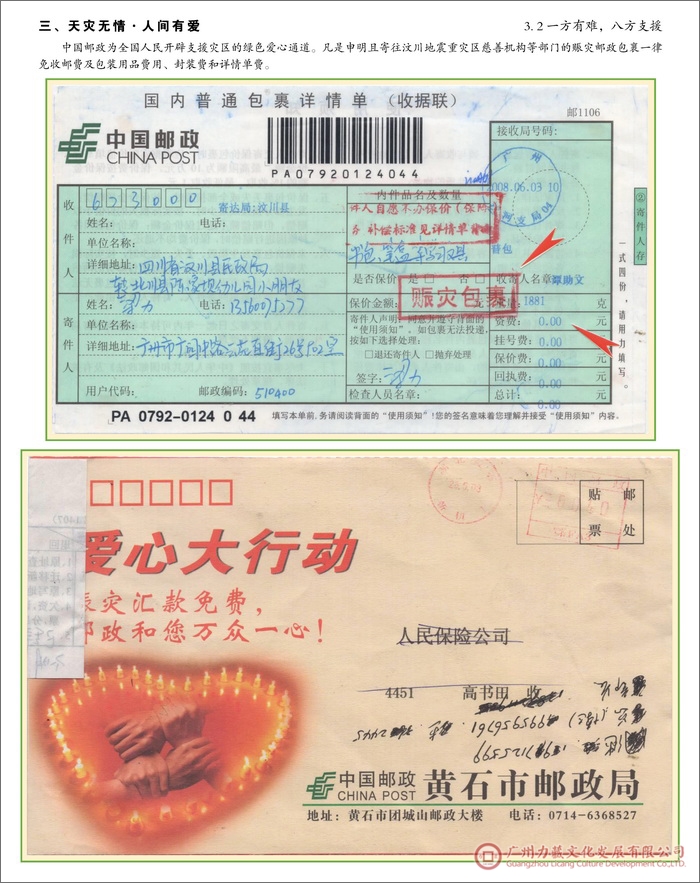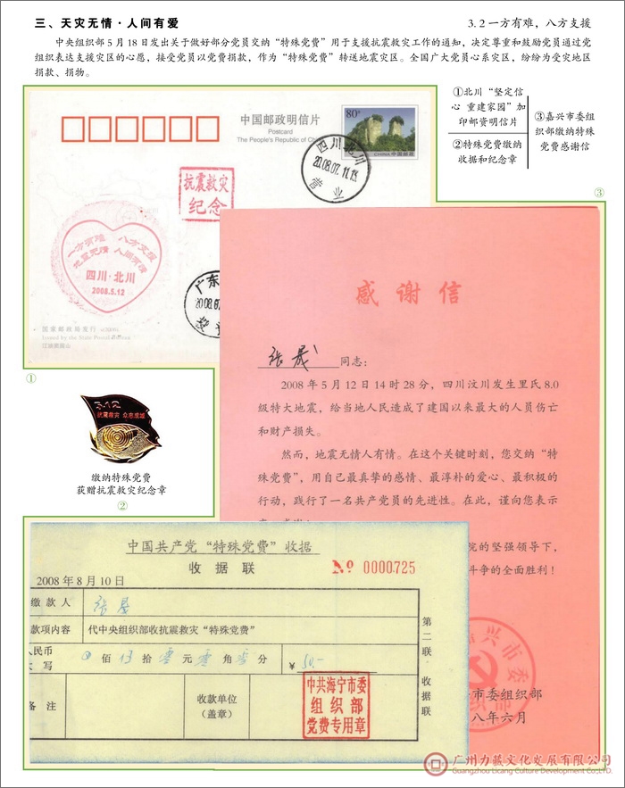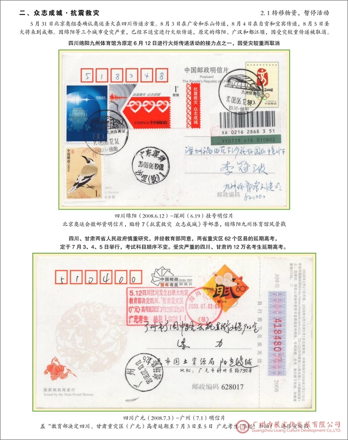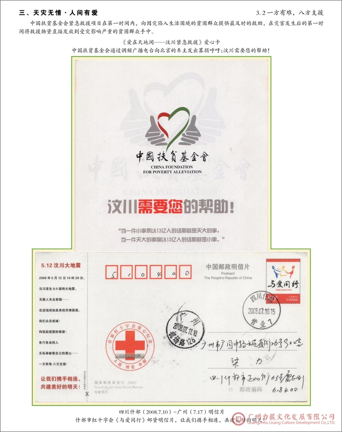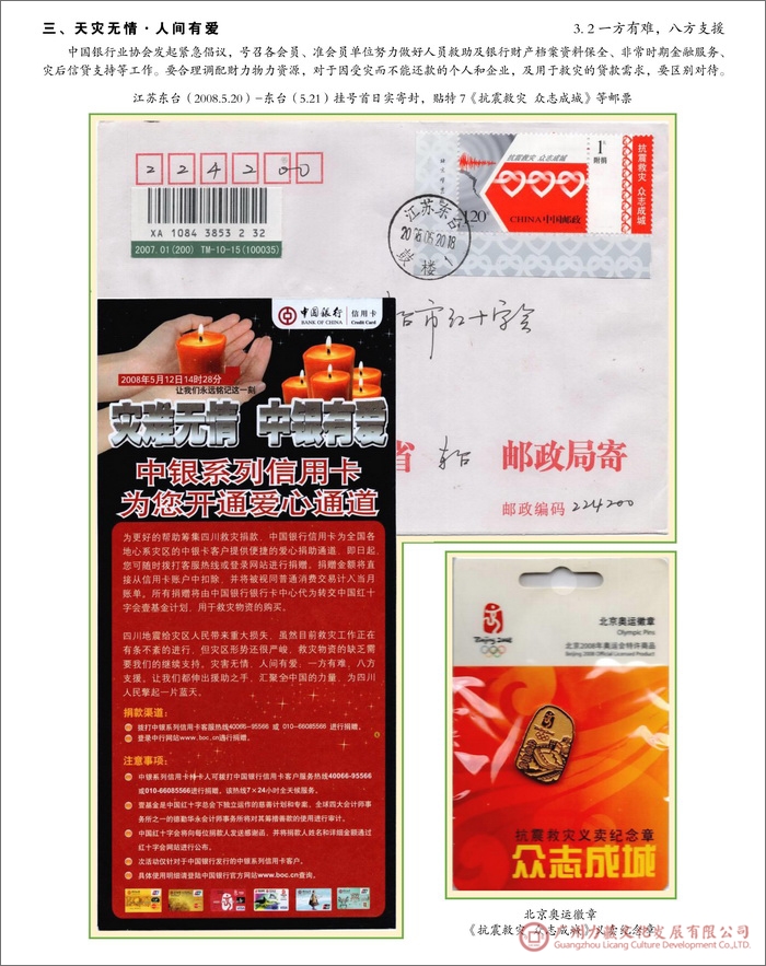 本邮集作者作为医务人员参与5·12抗震救灾,通过展示从地震灾区和全国各地寄出的实寄封片,以及反映抗震救灾的真实历史物品;介绍强震对生活、生产和邮政通信运输的影响,展现中华民族的中国心、抗震情。