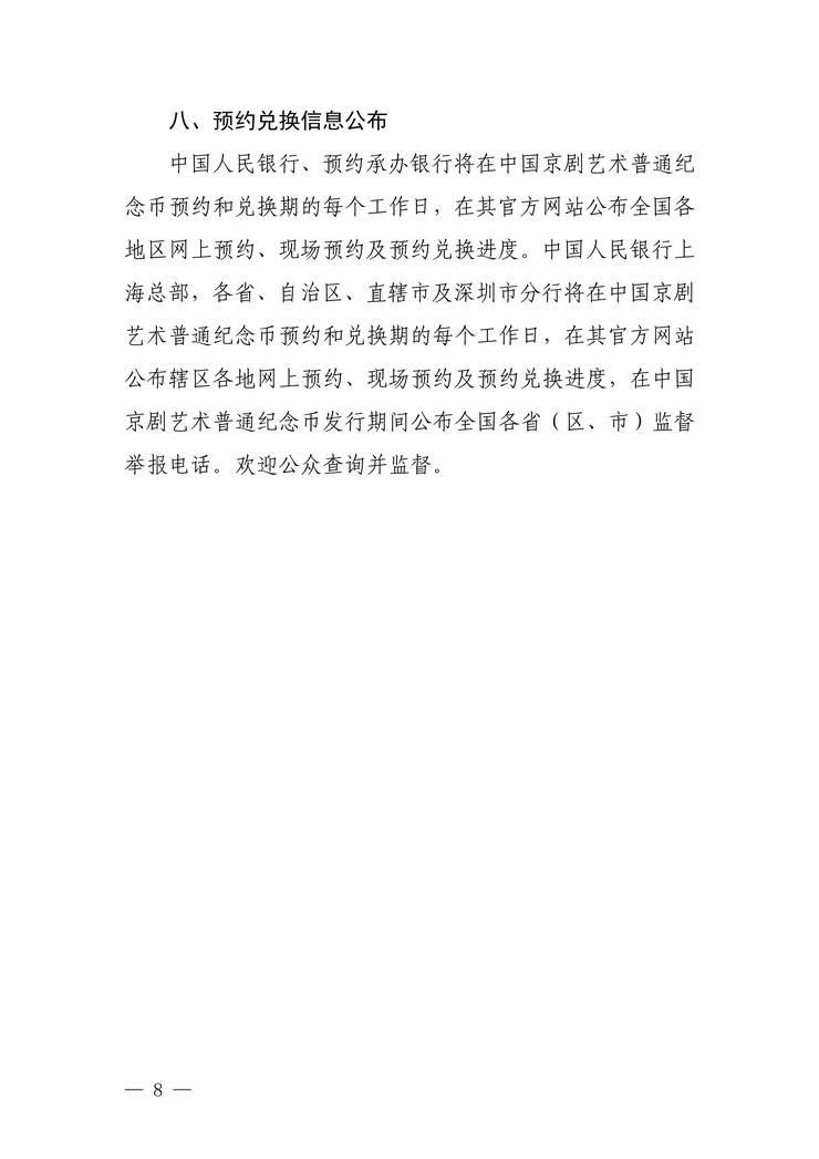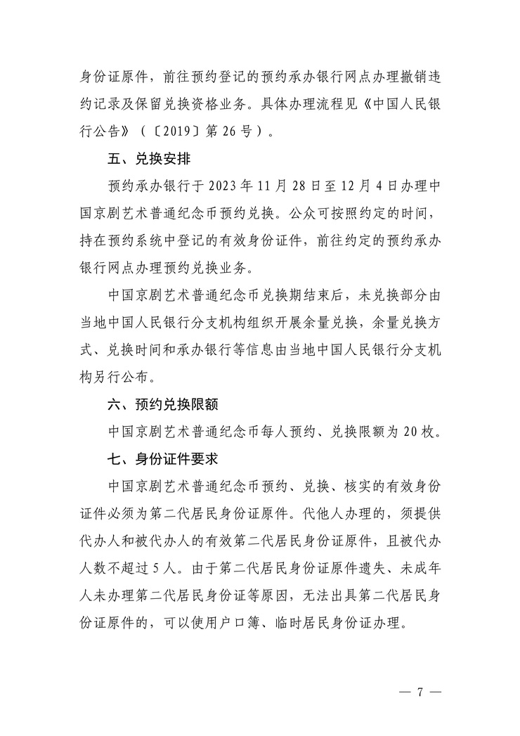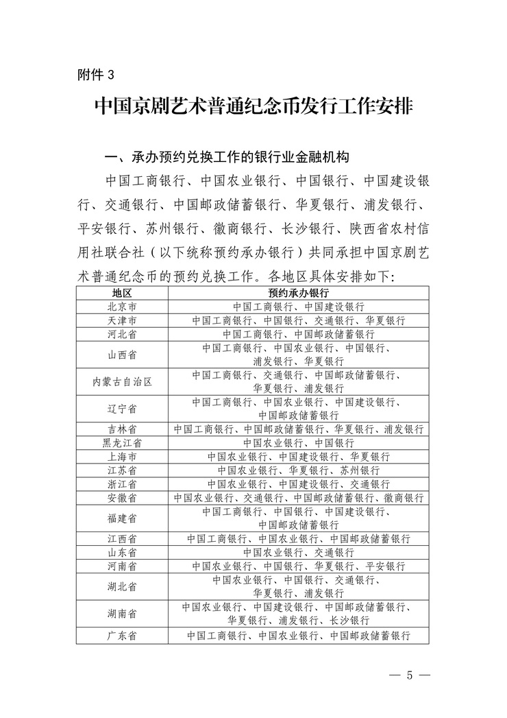 中国京剧艺术普通纪念币采取预约兑换方式发行。具体工作安排见附件3。