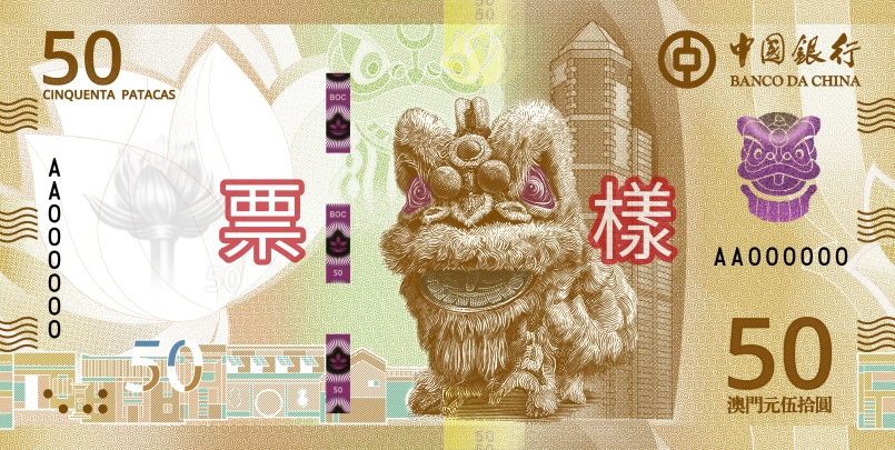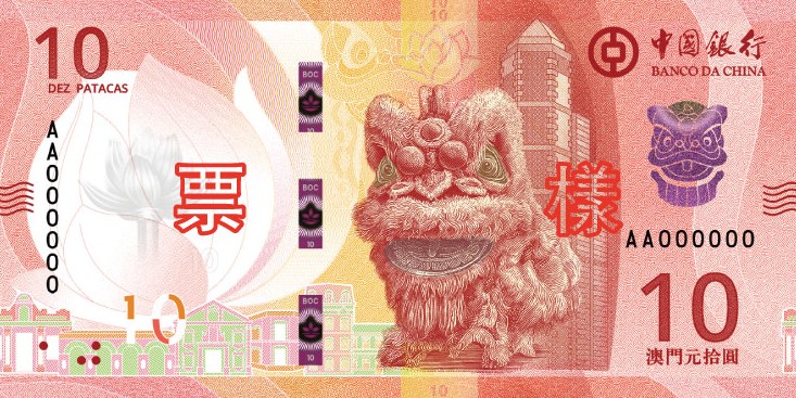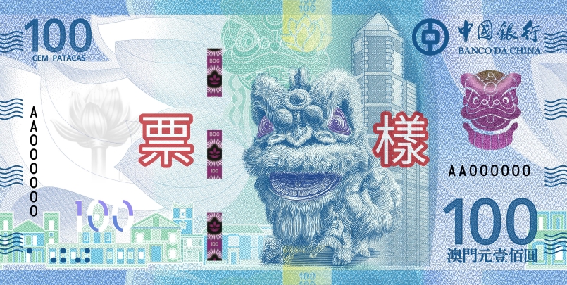 中国银行新系列钞票采用“南狮”为正面主景,呈现澳门蕴含的中华岭南文化;背面则采用具有澳门各种特色的建筑物或标志作主景,呈现出澳门深厚的历史底蕴和独特的城市魅力。