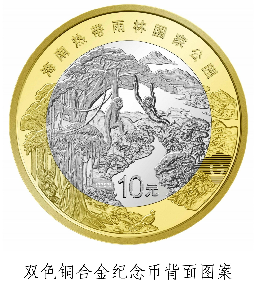 (五)海南热带雨林国家公园双色铜合金纪念币与现行流通人民币职能相同,与同面额人民币等值流通。
