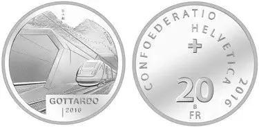 2016年瑞士圣哥达隧道20法郎纪念币