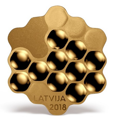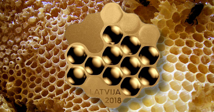 2018年5月22日,拉脱维亚中央银行发行“蜜蜂”纪念银币一枚。该币采用镀金工艺,在纪念币形制上,也选取了接近蜂巢的六边形。该币的设计理念就来源于拉脱维亚人对与蜜蜂的无限钟爱。该币为拉脱维亚法定货币,由立陶宛造币厂铸造。