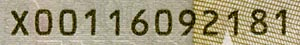 例如:X00160921181 ,德国版欧元,国家识别码是X,数字校验码是2,