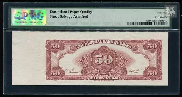 经销商和收藏者多年来都称之为'VF-XF',这一等级的纸币看上去接近40 Extremely Fine,但会有4-7条折痕。