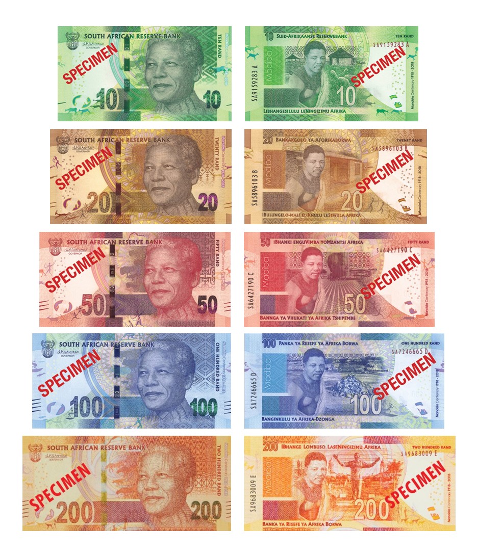 南非储备银行正在计划在2018年7月18日即曼德拉诞辰一百周年的实际周年纪念日之前发行这些纪念钞。预计这些纪念钞票和R5硬币将在有限的时间内共同流通,以及最初于2013年推出的现有曼德拉钞票系列和2004年推出的现有双金属R5硬币,所有纸币和硬币为法定货币。