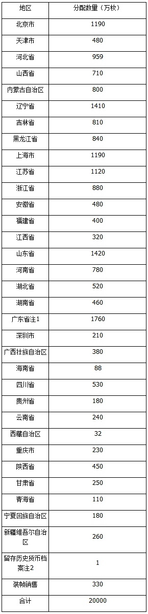 3.中国人民银行可能根据各地预约情况对各省、自治区、直辖市的分配数量进行调整,调整结果将另行公布。