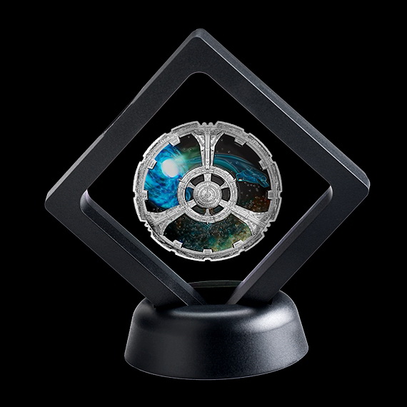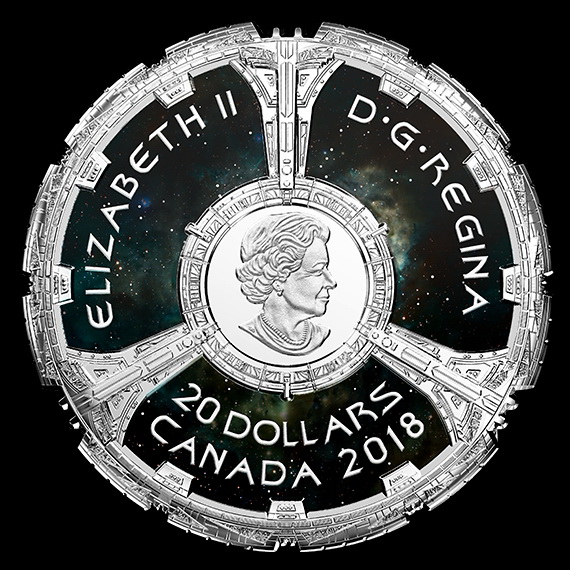 为纪念《星际迷航:深空九号》开播25周年,加拿大于2018年发行《星际迷航:深空九号》纪念银币一枚。该币正背面均采用彩色工艺,是加拿大首枚正面采用全彩色工艺制作的纪念币。该币为加拿大法定货币,由加拿大皇家造币厂铸造。