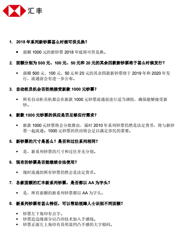 今天下午,香港金融管理局与汇丰、渣打、中银三家发钞行联合公布了2018香港新钞票系列的图样。新钞共有五个面额,背面主题首次统一命题,五个面额分别展示香港的茶点、蝴蝶、粤剧、地质公园、金融中心,设计立意自定。1000元和500元新钞将分别于今年第四季度和明年年初发行,其余三个面额将于2019至2020年期间推出。这是时隔八年后香港流通纸币的又一次大改版。