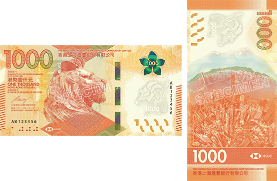每款钞票的正面都展现汇丰铜狮“施迪”,以及皇后大道中1号汇丰总行大厦外貌的传统元素。铜狮“史提芬”和“施迪”世代守护香港,早已成为家传户晓的标记。时至今日,市民仍会触摸其狮爪,冀求好运。现时的汇丰总行大厦于1985年落成,是这个国际大都市的代表性地标。
