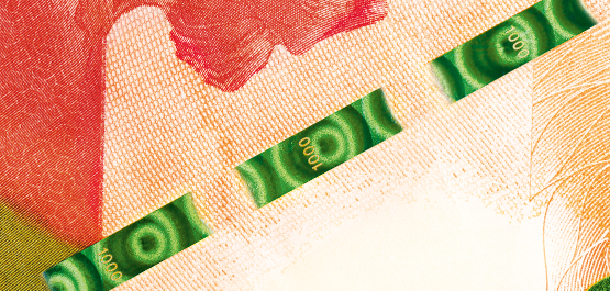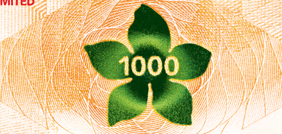 我们在2018年系列钞票中加入了新的动态效果。铜狮“施迪”会以不同角度展示于各款面额的钞票上,并在全套钞票系列上呈左右环视的形态。