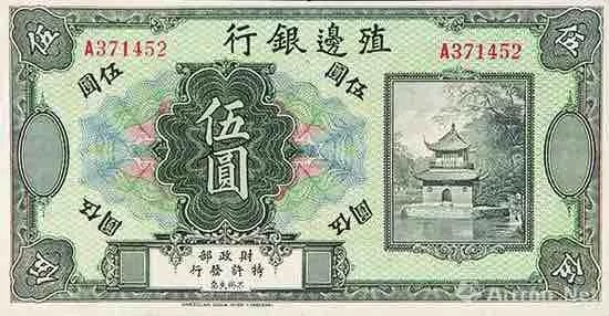 (图3)殖边银行于民国七年(1918年)发行的伍圆券