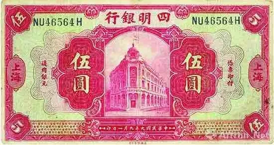 (图4)四明银行在民国九年(1920年)发行的伍圆券