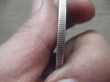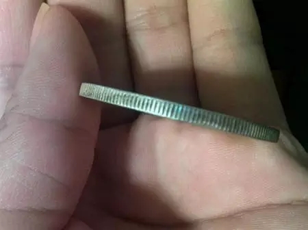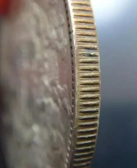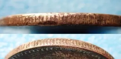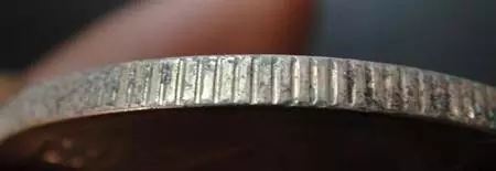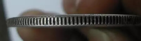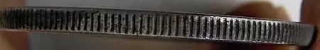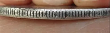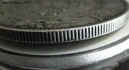 橄榄齿:由于造币厂在铸币之前对币的饼坯先行倒角,铸造后就会留下看似中间宽两头窄的效果,上下两齿看似两片嘴唇,有些人称之为“橄榄齿”,是一种象形的说法。