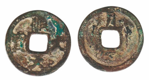 李太祖称帝后,定年号为“顺天”。李太祖在位期间(1010—1028),仿中国宋朝制度,铸造有“顺天大宝”汉字年号钱。“顺天大宝”钱(图3),呈圆形方孔状,一般直径在24毫米左右,重5克上下。材质为青铜,但杂质多,铜色略显灰白,制作粗糙。钱文“顺天大宝”四汉字,楷书对读,文字排列欠周正,似乎有所倾斜,不太均匀及协调。以“大宝”作为钱币名称,这在此前中国和越南所铸钱币上都没有见到,是一种创举,显示了李太祖开国建业的雄心壮志;钱币背面穿上铸一汉文“月”字,这也前所未见,推测可能是受到唐朝“开元通宝”钱背铸月牙纹饰,或李太祖故乡福建泉州在五代闽国时期至北宋初年广泛流通使用铅“开元通宝”、“永隆通宝”钱背有巨型月纹的影响,铸汉字“月”表示月纹。“顺天大宝”钱版式较为单一,目前未见明显的版别区分。网络上还出现了一种“顺天大宝”背“月”小平银钱,未见实物,真假难定。