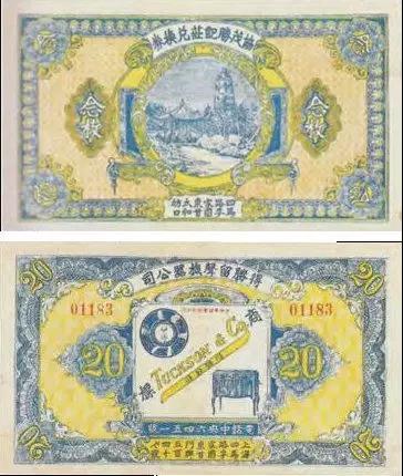 协茂胜记庄兑换券,券背印有得胜留声机器公司广告