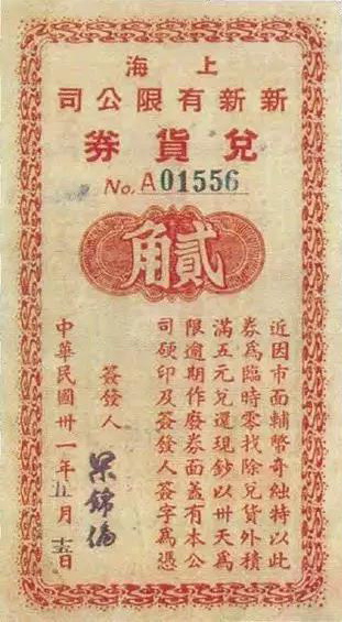 对于各大公司、商号及公交系统营业来说,所需辅币数额颇大,邮票、印花根本不能解决找零问题,于是采取自行印制代价券的办法,代替辅币使用。例如,1939年6月18日法租界电车及公共汽车公司因拒收邮票、印花,营业发生困难,发行用卡纸制成的一分、二分两种代价券。同日,公共租界英商电车公司采取同样步骤,发行二分、三分代价券,印有红色阿拉伯数字“2”或“3”,其中文“二”或“三”为空心字,券面下端轧有线眼,上端编印号码。各店肆商号、游乐场所乃至药房、茶室、理发厅、浴室等纷纷效尤,自印自作,面值、大小、式样、色彩、质量、图案各不相同,可谓三百六十行,行行都有代价券。