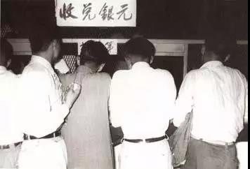 建国初期,外侨正在兑换新人民币