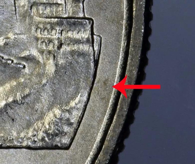 第一种版别(见下图)为“图案靠近币缘”版(图一和图二)。红色箭头所指的是图案靠近币缘的部分。