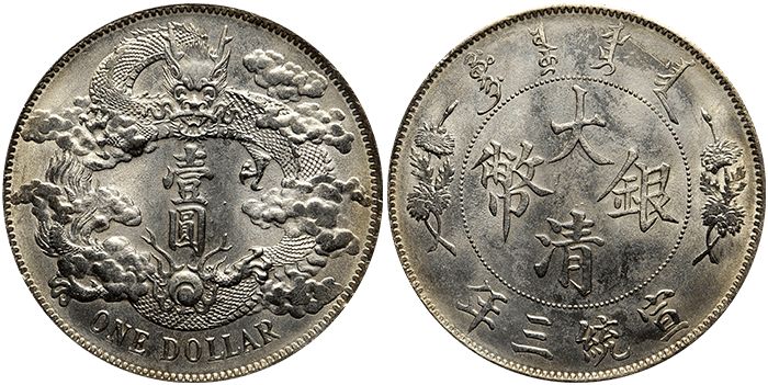 作为清朝最后发行的硬币之一,该币图案中的龙盘旋在大片云朵之间,极其精美。币模由Luigi Giorgi在天津造币厂制作,天津、南京和武昌造币厂都铸造了该币。虽然该枚精美的银币发行量很大,但获得高分的非常稀少且极受欢迎。