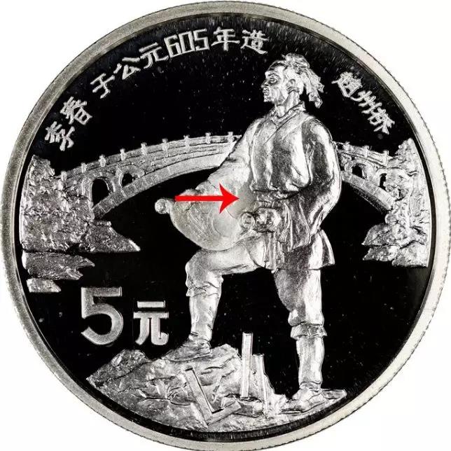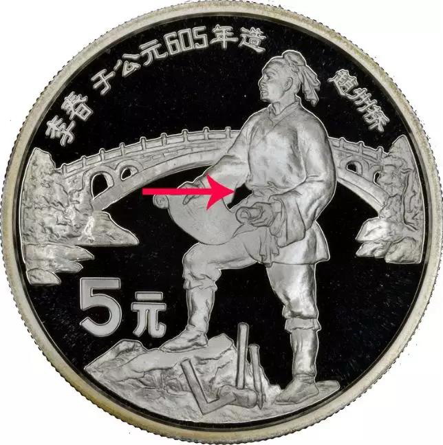 1987年,中国发行了第四组杰出历史人物纪念币,包括一金四银五枚硬币。其中的一枚纪念李春的银质纪念币,李春手臂和腰部之间的空隙,有镜面和霜面之分。