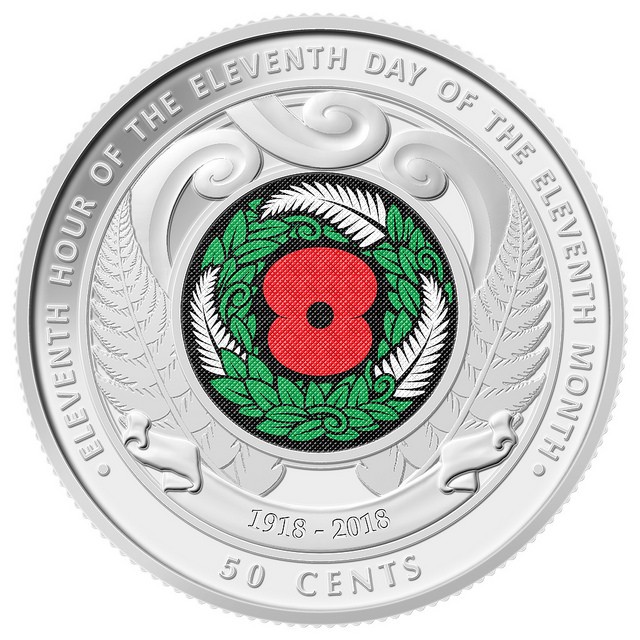 新西兰储备银行(8月27日)推出了他们的第二枚纪念币,纪念币的背面有彩色图案。停战日一百周年是突出的主题和主题。继2015年为纪念第一次世界大战期间服役的澳大利亚和新西兰ANZAC部队成立100周年发行的第一枚硬币之后,第二枚硬币向1918年11月第一次世界大战结束100周年表示敬意。