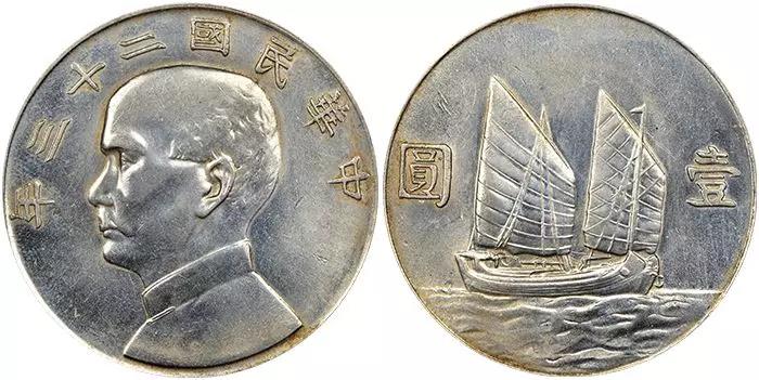 中华民国二十三年(1934)壹圆“船洋”在本列表中排列第一,这对很多人而言并不奇怪。该币因背面的帆船图案而得名,是所有中华民国壹圆银币中数量最多的硬币之一。共计铸造了一亿多枚,其中3000万枚由美国造币厂在1949年铸造,但银币上标注的年号仍是民国二十三年。
