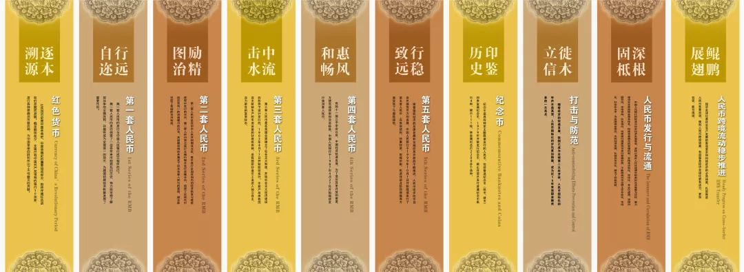 本次展览共分十个板块,涵盖中华人民共和国发行的五套人民币、普通纪念币、纪念钞、贵金属纪念币,以及打击防范假币、人民币发行与流通、人民币跨境流动等方面的内容,共展出珍贵展品500余件。