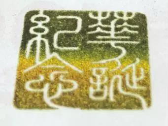 钞票正面左下部方形图案,篆刻有阴文“华诞纪念”字样,采用SPARK光彩光变油墨印刷,换角度转动可见其中有一横向光带随视线滚动,晃动时光带会上下滑动,墨面颜色由棕色变绿、由绿变红不断变化。