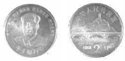 另一枚正面为戴八角帽毛泽东头像,国名“中华人民共和国”亦为毛体;背面图案为遵义会议遗址,下方是“伍分”面值和“1969”年代。严格的讲此三枚不成套,其一是缺少一枚贰分币,其二是此三枚设计风格不同,如背面面值“ 伍分”用的是中文大写,而“1分”则采用阿拉伯数字,显然应分属不同的组合。该三枚分币在2001年中国嘉德秋拍时25万流标,后被上海Z先生22万购入。