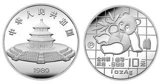 该币是中国第一枚普制熊猫银币,且设计最为独特:背景为令人难忘的网格,中央位置刻画了一只憨头憨脑的熊猫,正拿着嫩竹一通啃嚼,其他的完全不管不顾了。这只可爱的熊猫形象的设计者为上海造币厂(上海造币有限公司前身)高级工艺美术大师罗永辉。