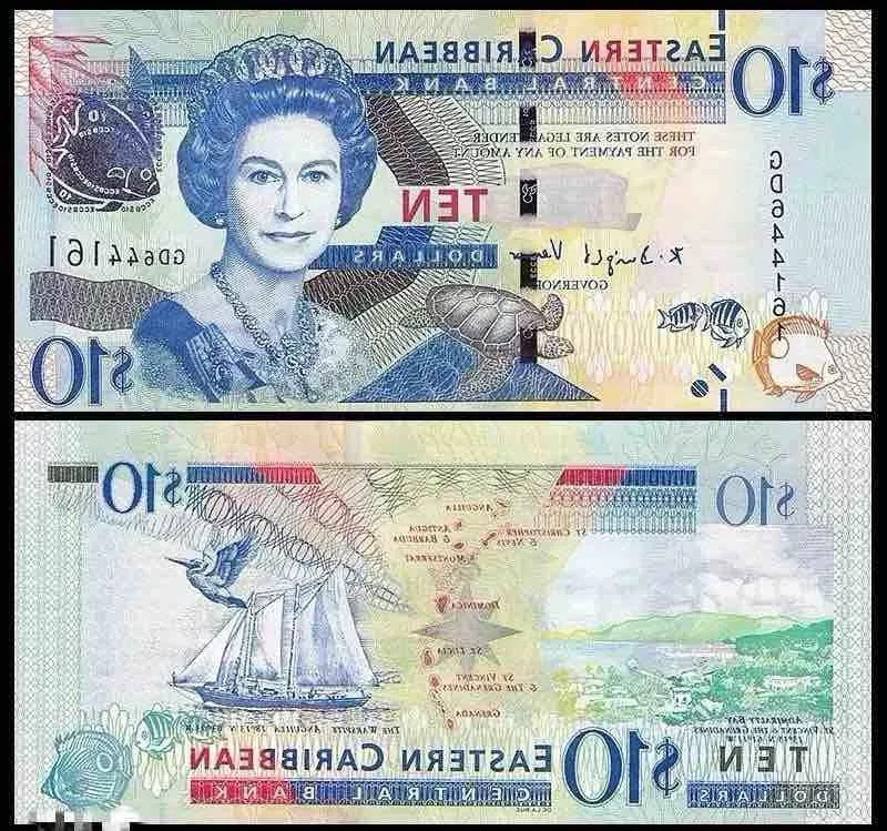 这套新版东加勒比元塑料钞,将在 8 个国家和地区投入流通使用,是因为东加勒比元跟欧元和非洲法郎一样,是由在加勒比海上曾经被英国统治的小岛组成的一个货币共同体,目前成员国有:安提瓜和巴布达、多米尼克、格林纳达、蒙特塞拉特、圣基兹与尼维斯、圣卢西亚、圣文森特和格林纳丁斯、安圭拉。