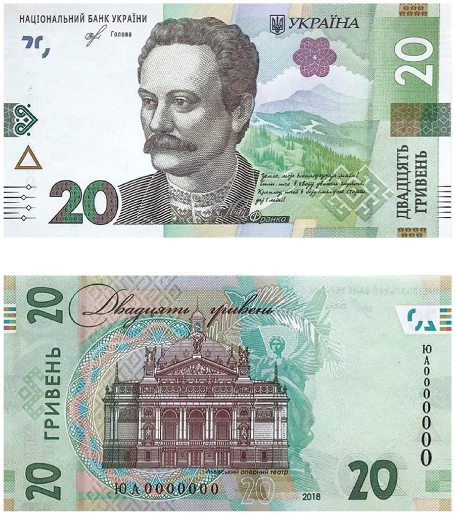 2018年设计的经重新设计的20格里夫纳钞票是乌克兰境内的法定货币,应被乌克兰境内所有个人和法律实体按面值接受,不受任何限制。