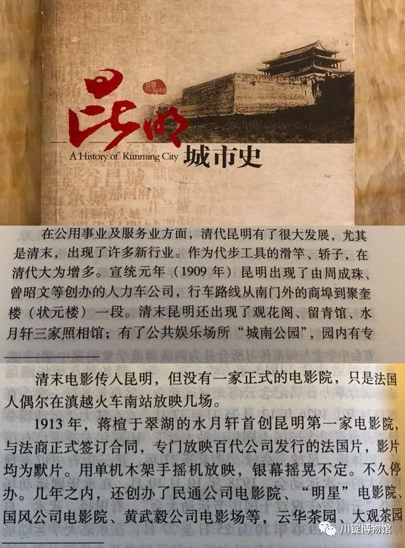 民国二年(1913)蒋楦又建了云南省第一家营业性电影场"水月轩",次年春节正式开业,煤石灯光源,单机手摇放映,男女分座,据说放映的第一场电影就是日俄战争纪录片,慢慢地,水月轩就成为了翠湖的文化娱乐区。之后电影场因蒋楦卷入伪钞案被封,但“水月轩”这个名字仍然沿称至今。