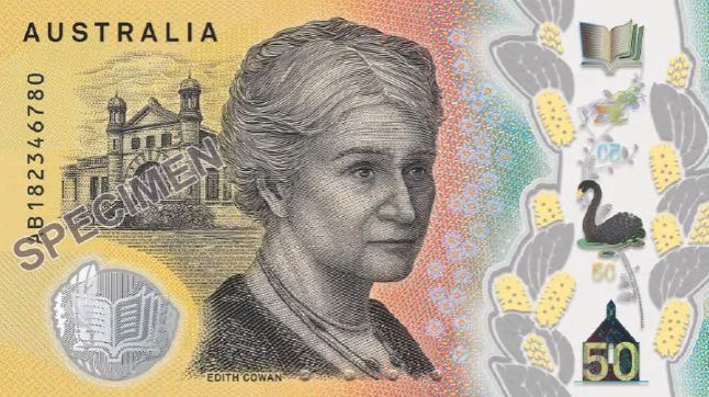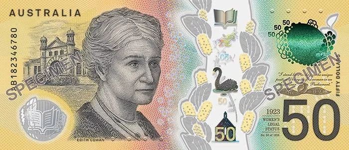 10月18日,澳大利亚央行发行了第二代塑料流通钞中的第三枚——50澳元。新钞正面为原住民作家和发明家——大卫·乌奈庞(David Unaipon),背面为澳大利亚第一位女议员——艾迪·考文(Edith Cowan)。新版20元和100元新钞将分别于2019年、2020年发行。
