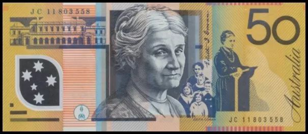 新款$50纸币正反两面纸币人物和旧版的50澳元相比,我们可以看到: