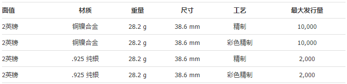 这两个版本的纪念币,精制的未流通的铜镍合金纪念币和带证书的纯银纪念币,也可与罂粟红作为悼念那些谁失去了他们的生命。这枚精美的银币由丙烯酸胶囊保护,并被包装在一个自定义品牌的盒子里,其中包括一个单独编号的真伪证明。灿烂的非流通铜镍硬币呈现在布袋中。